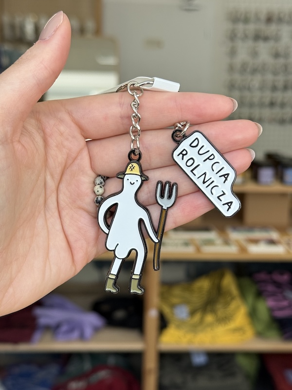 Uroczy metalowy brelok z emaliowany z Dupcią rolniczą! Prezent idealny dla wszystkich, którzy wiedzą, że najlepsze rzeczy rosną powoli!