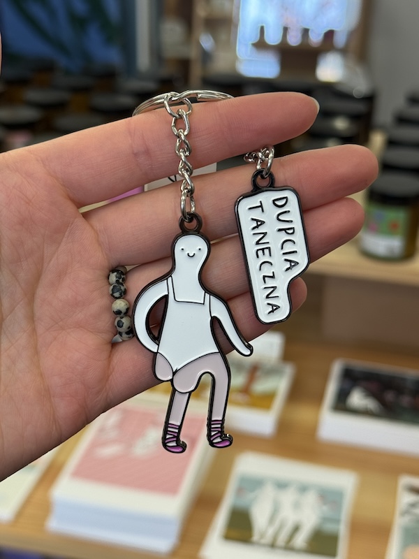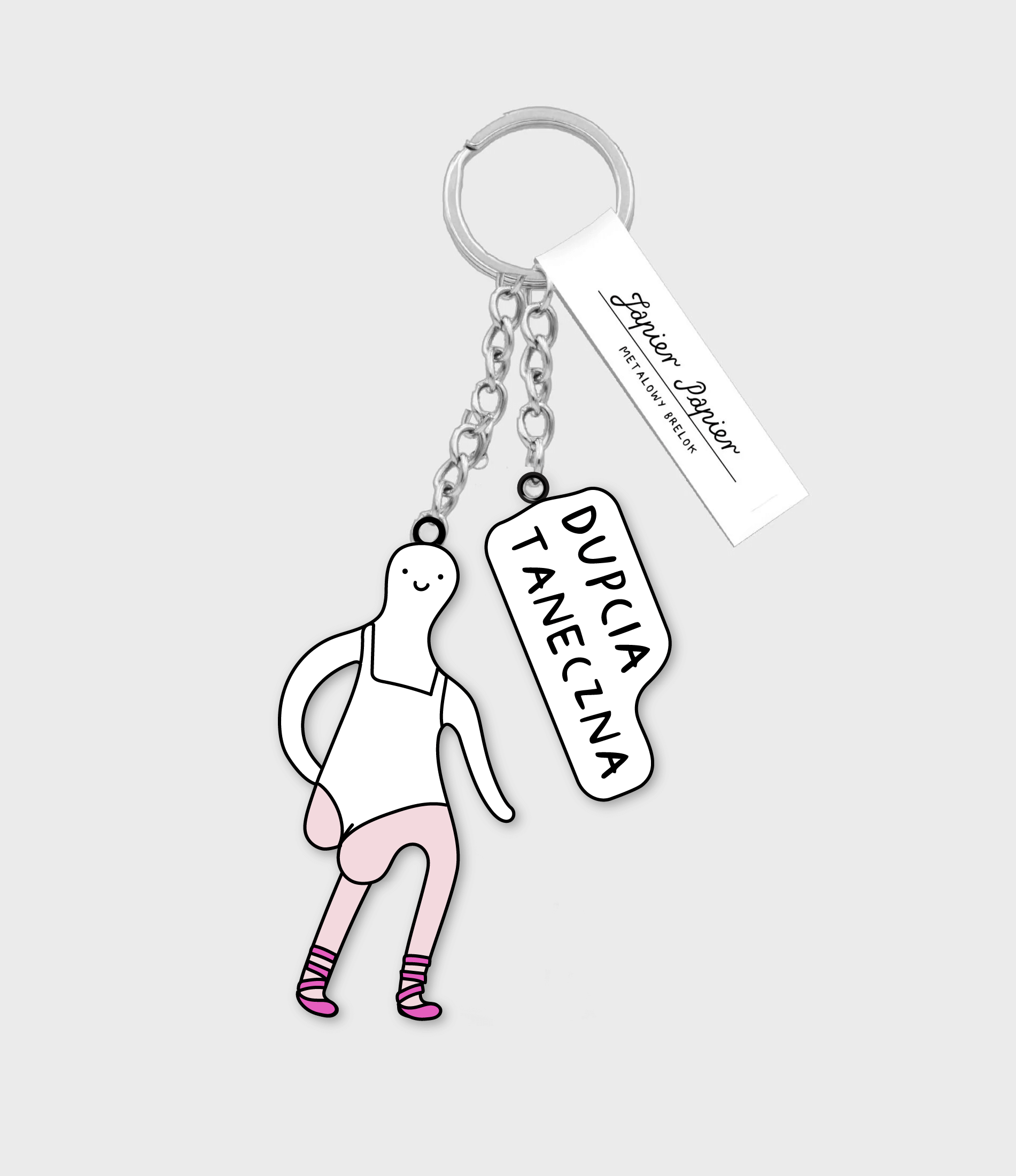 Metalowy brelok z emaliowanym napisem Dupcia taneczna.