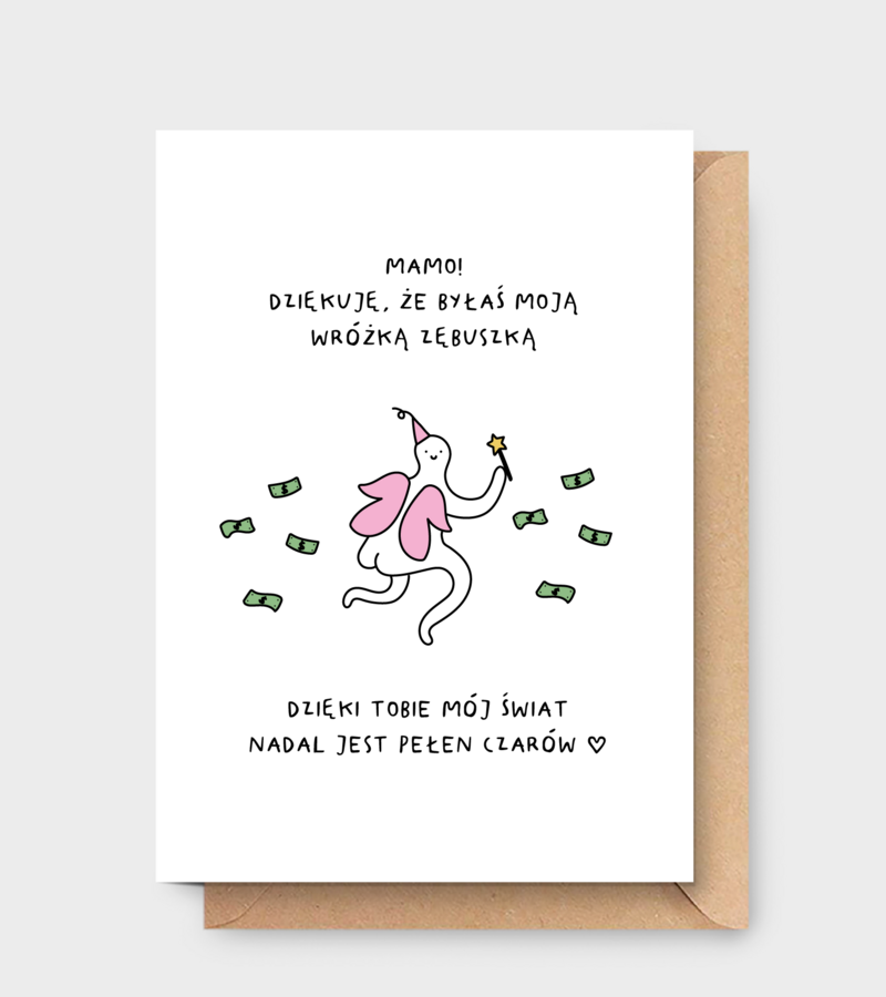 Kartka dla Mamy – Mamo! Dziękuję, że byłaś moją wróżką zębuszką.