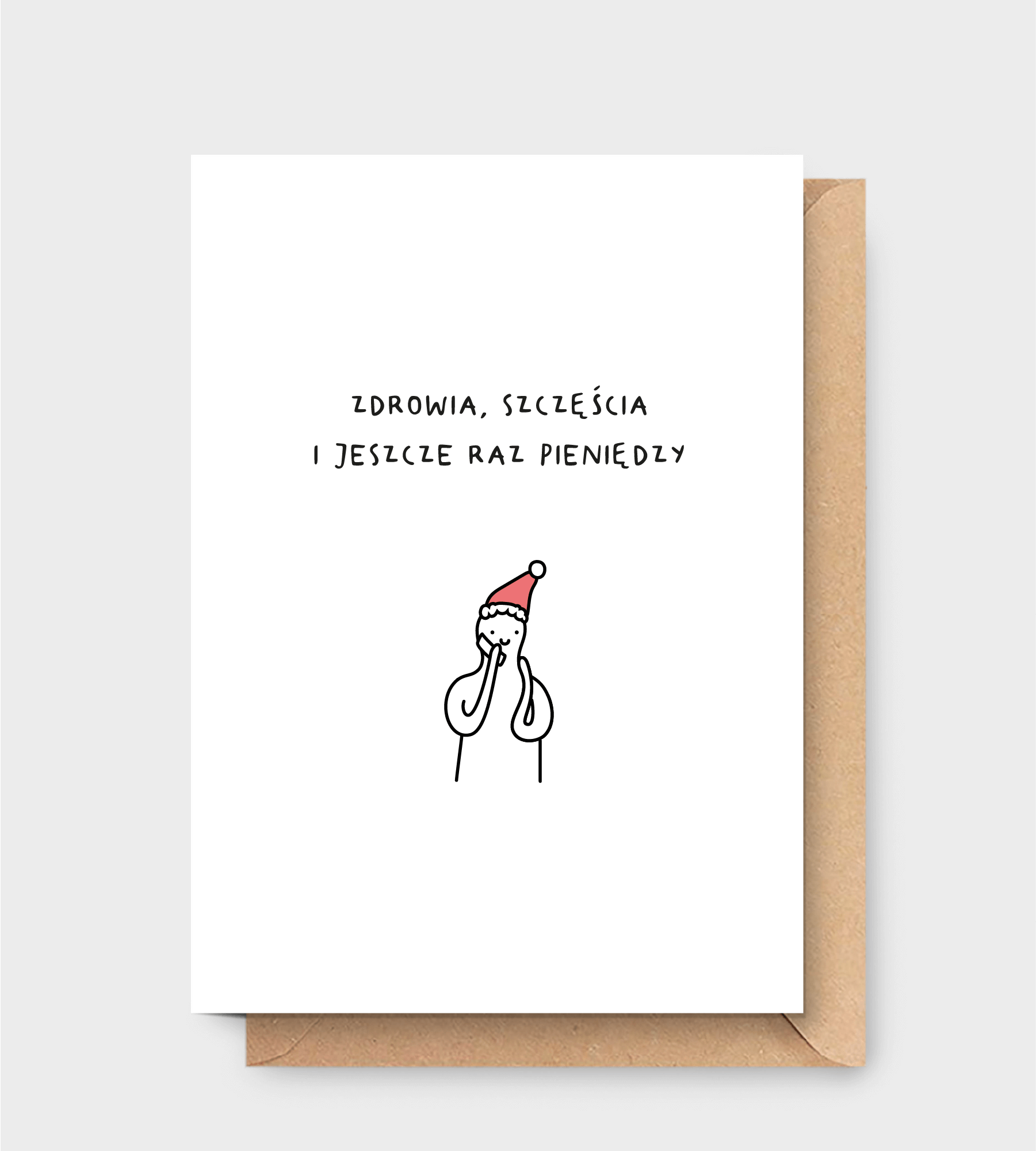kartka świąteczna z kopertą – Zdrowia, szczęścia i jeszcze raz pieniędzy