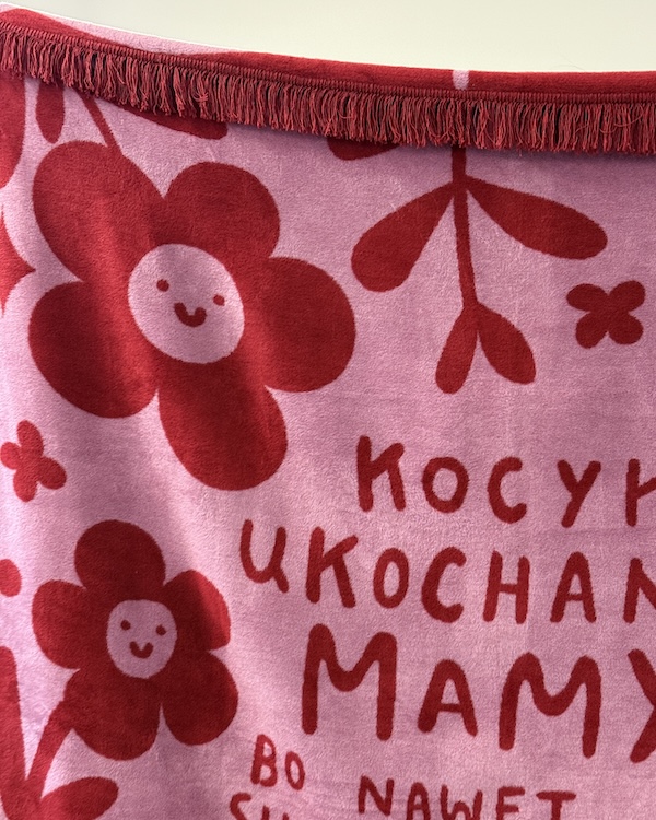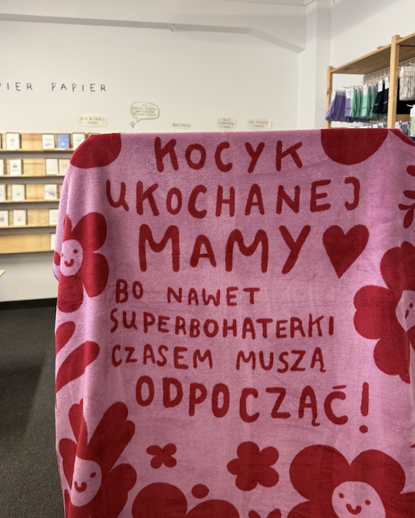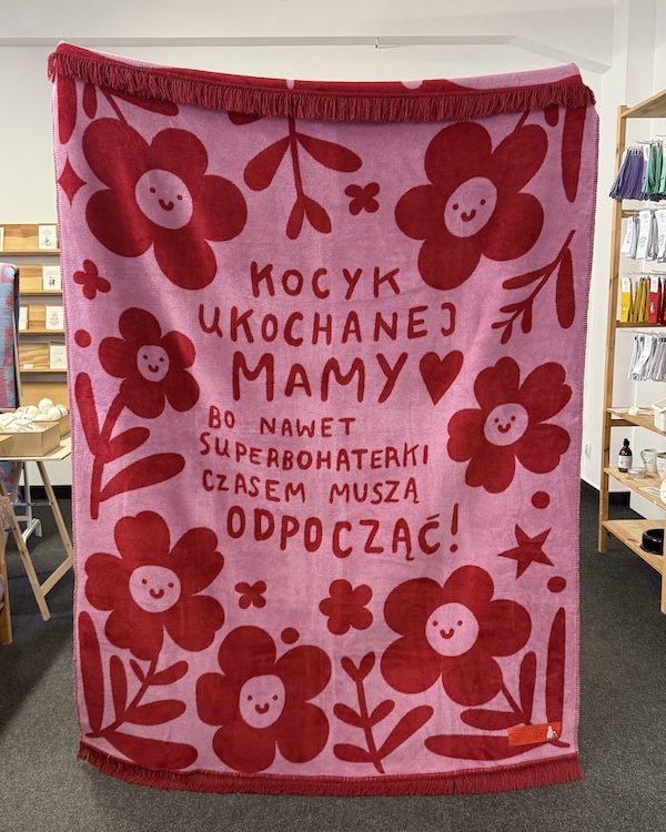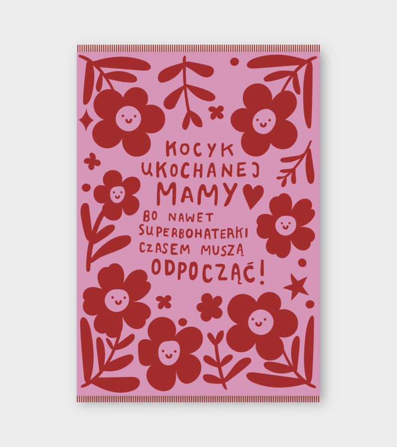 Dwustronny koc z napisem: Kocyk ukochanej mamy. Bo nawet superbohaterki czasem muszą odpocząć!