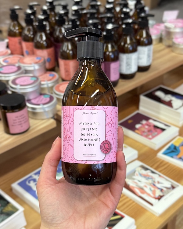 Mydło pod prysznic do mycia Dupci – róża & wanilia. Ma gęstą konsystencję, dobrze się pieni nawet przy niewielkiej ilości i łatwo spłukuje, bez potrzeby zużywania dużej ilości wody. Jest bardzo wydajne i starcza na długo. Przeznaczone do mycia powabnych pośladków i zmywania wszystkich dramatów dnia codziennego. Używaj śmiało, szoruj czule i dziel się z kim chcesz! Twoja dupcia, Twoje zasady!