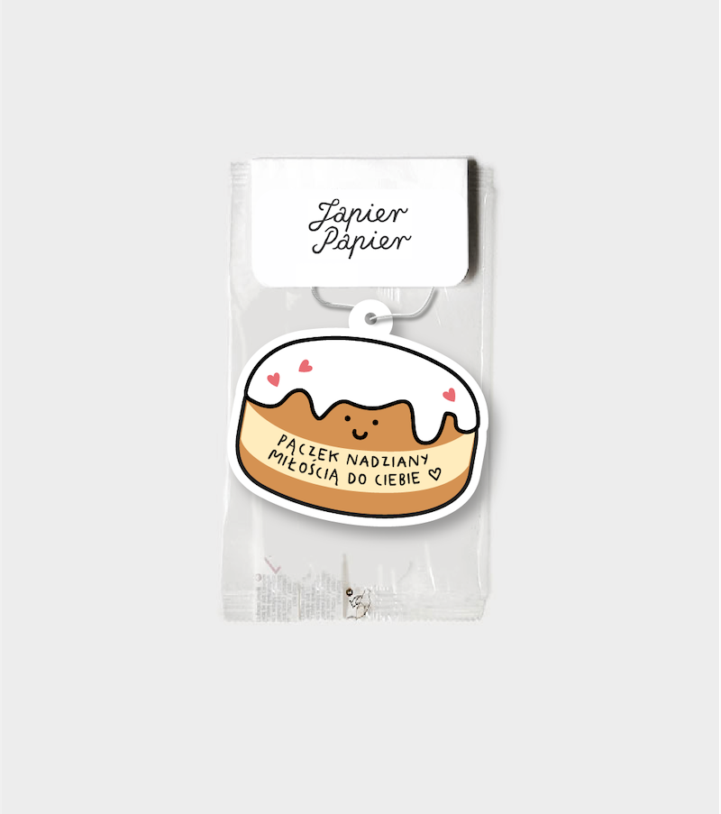 Nudzi Cię zapach w Twoim samochodzie lub szafie? Potrzebujesz powiewu świeżości? Mamy na to rozwiązanie! Zamów już teraz! Nasza zawieszka zapachowa „Pączek nadziany miłością do Ciebie” wprowadzi do Twojego samochodu, szafy czy piwnicy powiew świeżości!